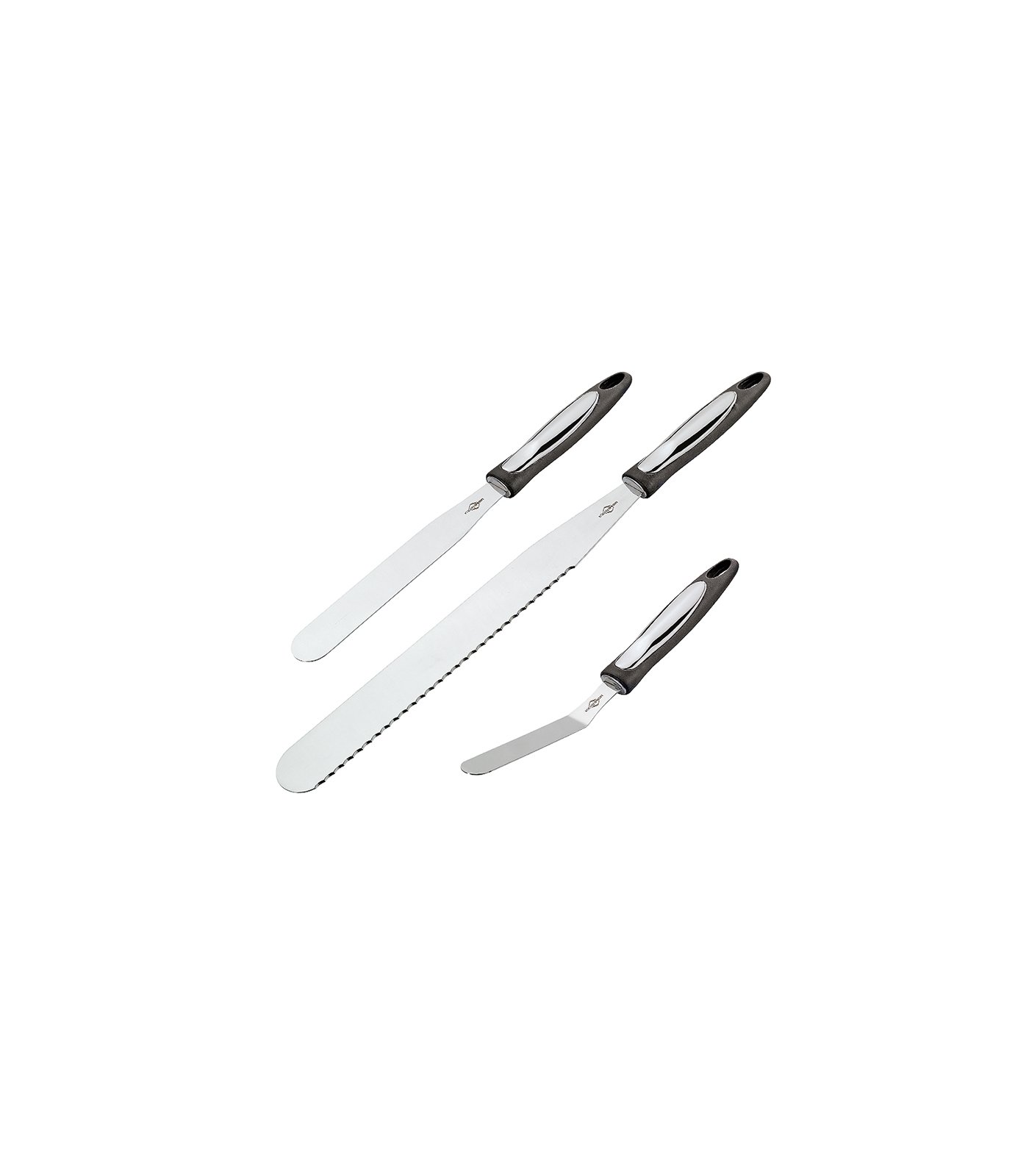 Kuchenmesser mit Wellenschliff / glatte Seite: 39cm, Spatel: 29cm, abgewinkelter Spatel: 25cm