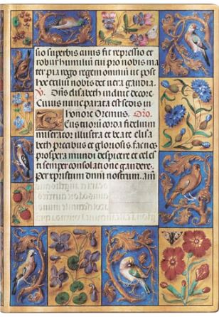 Displaying astounding naturalistic illusionism, the Spinola Hours is one of the most visually sophisticated 16th-century Flemish manuscripts. It contains a calendar of Church holidays, hours, offices and masses, as well as prayers, hymns and readings, all richly illuminated as seen in the page reproduced here..