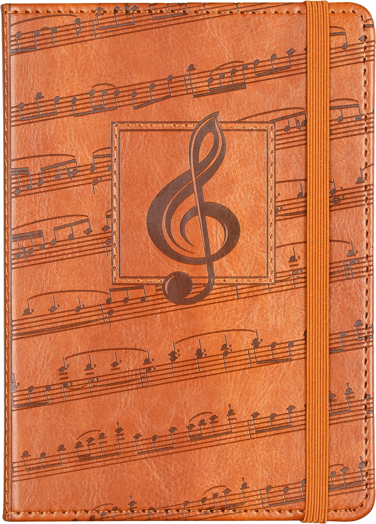 Elegant journal is crafted of soft, leather-like cover material and features a music-themed design.