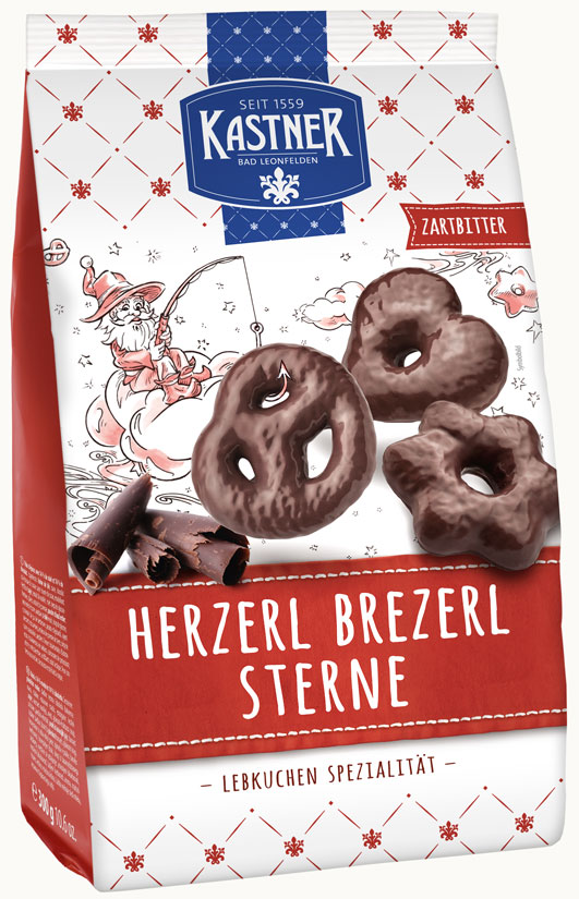 Kastner Dark Chocolate Gingerbread Hearts, Stars, Pretzels