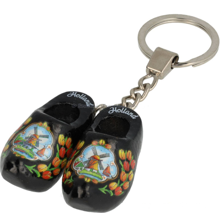 Keychain Double Wooden Shoe, black Tulip