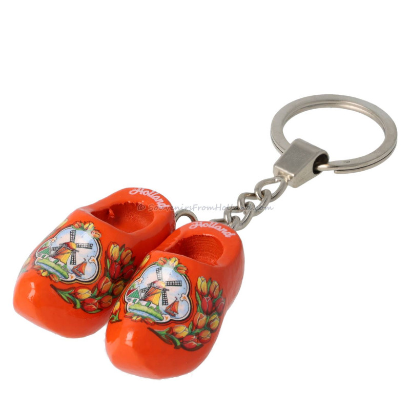 Keychain Double Wooden Shoe - orange Tulip
