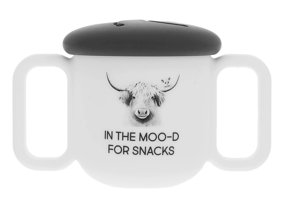 Pavilion, Kids Silicone Snack Bowl with Lid "In The MOO-D For Snacks"