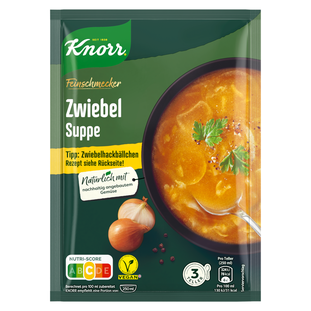 Knorr's flavourful onion soup is not only popular as a soup, but also as a base for many delicious dishes with extra large pieces of onion.
