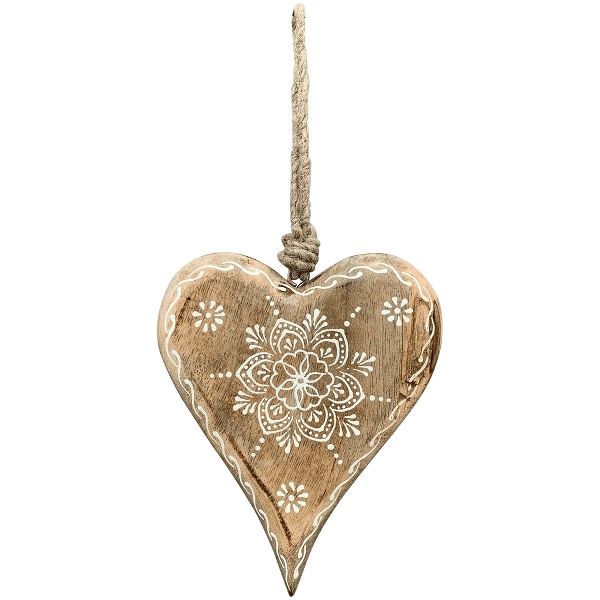 Ornament Hanging Medium Wooden Heart - Natural and White