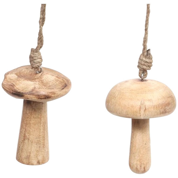 Ornament Wooden Mushroom Natural - 2 Assorted