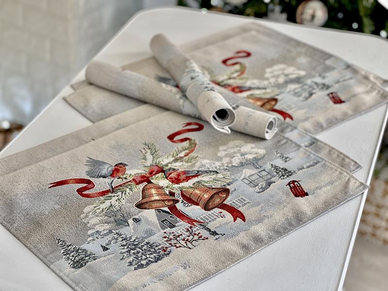 Tischset - Gimpelfamilie mit silbernem Lurex