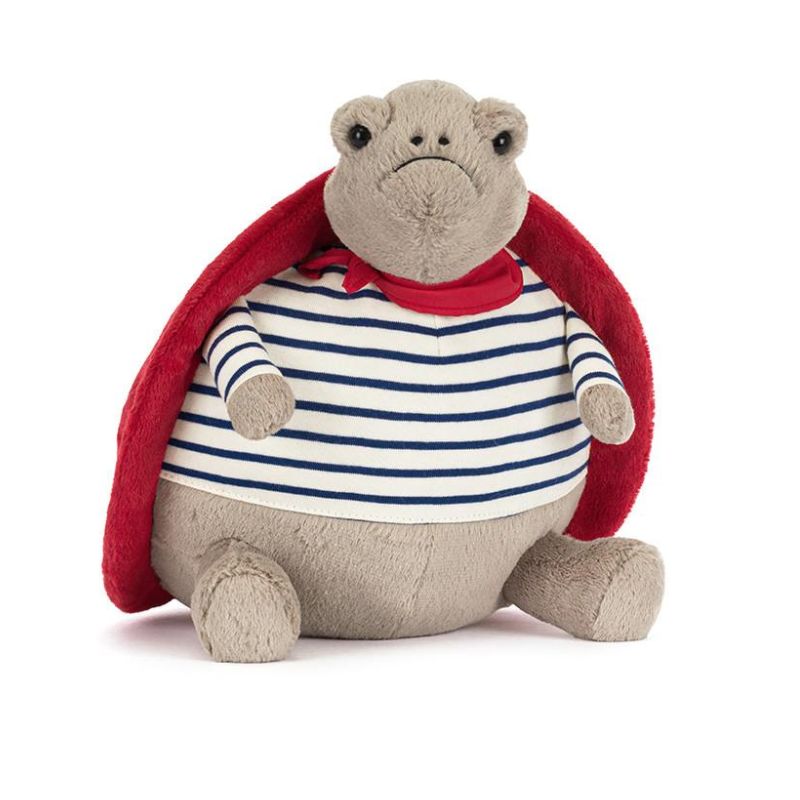 Jellycat London Plush medium Turtle "Timmy" im marineblau-weiss gestreiftem Outfit