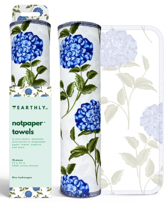 Earthly wiederverwendbare Papierhandtuecher, 10er-Pack, blaue Hortensie