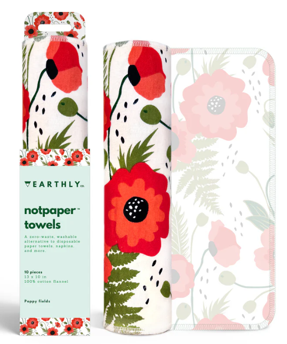 Earthly Reusable Paper Towel Pack of 10, Poppy Fields