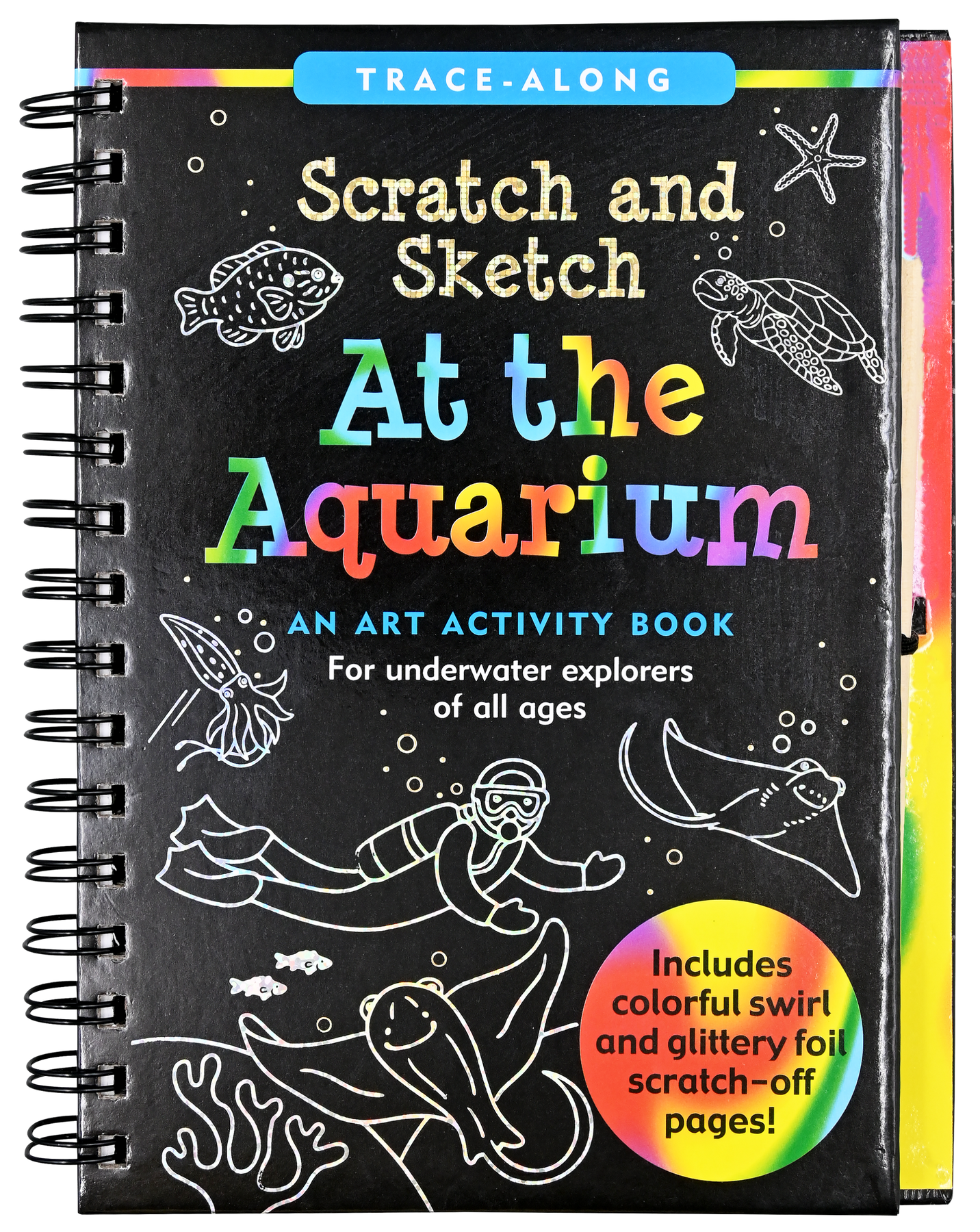 White outlines on black scratch-off pages create a fun way for younger children (5 and up) to trace the pictures, revealing patterns, swirls, and holographic colours.