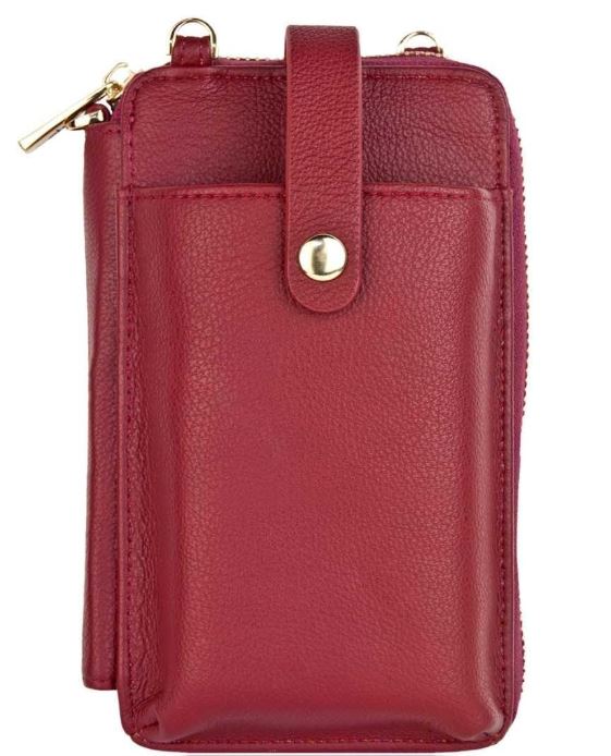 The main zipper compartment with 8 built-in card slots, 1 window slot, 1 bill slot and a zippered change compartment.Front smartphone pocket with magnetic closure.Detachable and adjustable shoulder and wrist straps included.This pouch is perfect for the new iPhone and fits most smartphones. PETA approved vegan wallet