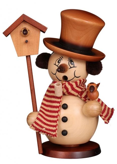 Smoker Snowman with Aviary Natural / Raeuchermaennchen Schneemann mit Vogelhaus