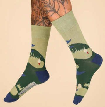 Our Powder socks are for the creative Gentlemen out there. This Hole in One design will hopefully bring birdies and sensational luck to any golf course!