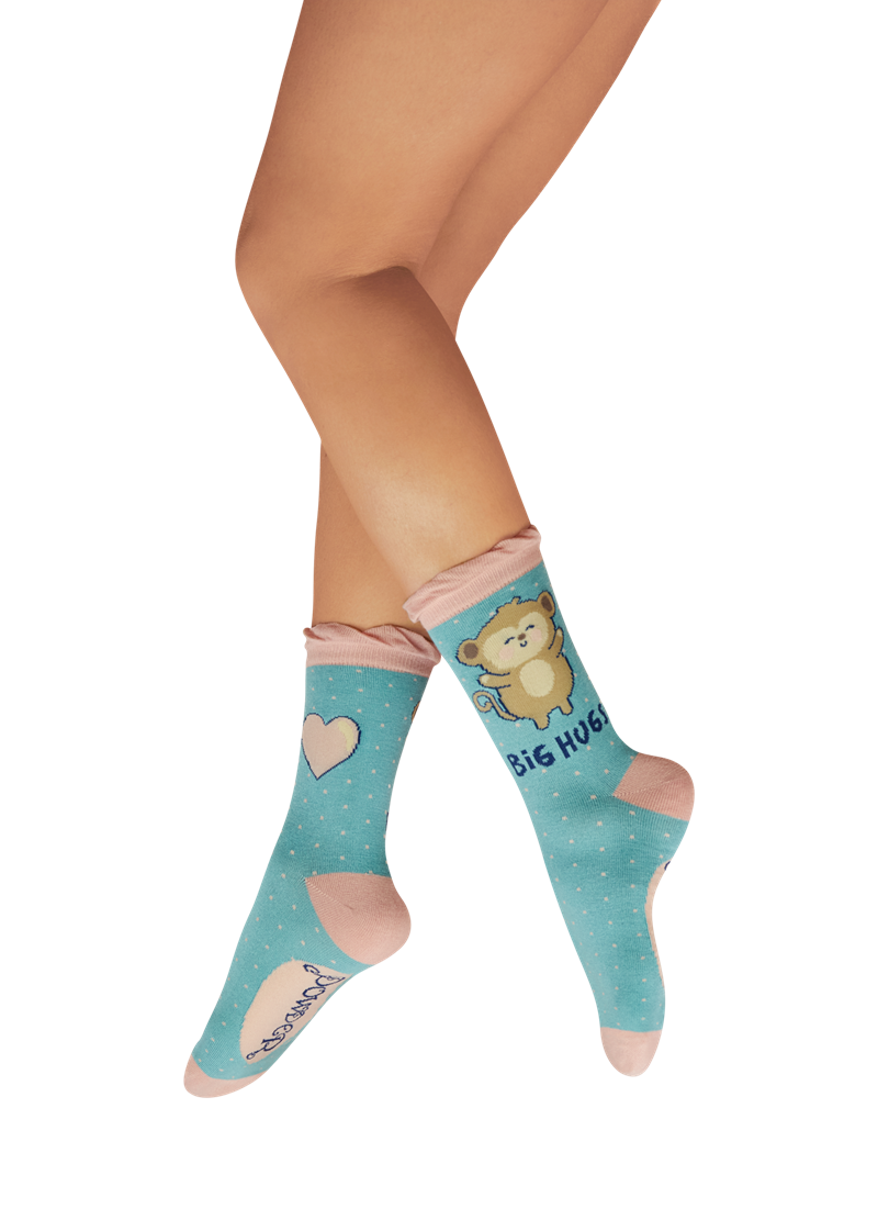 Have your loved one blushing when you gift these super cute huggy monkey ankle socks. Full of personality and bamboo softness.