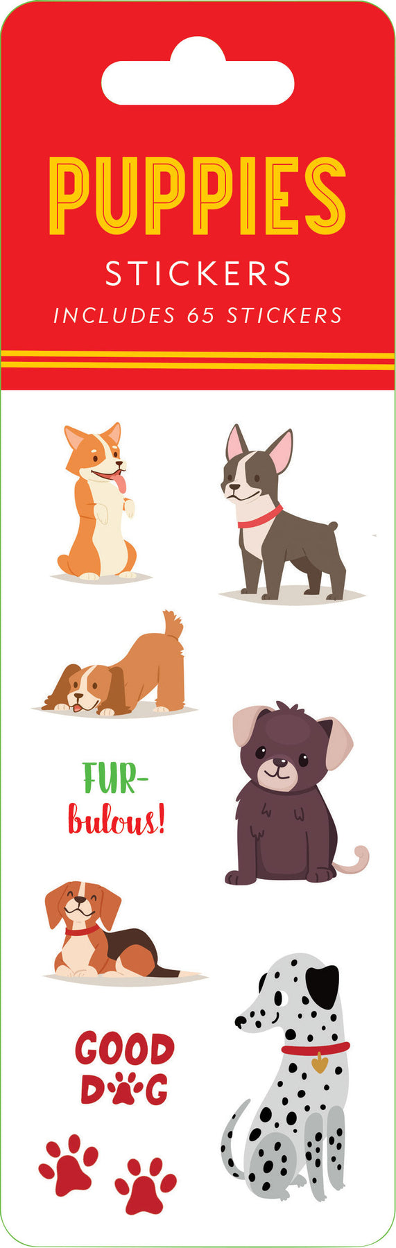 Ruff! This irresistible sticker set is for you! Cute puppy images: Corgis, Dalmatians, Beagles, and more, are combined with pawprints, bones, a doghouse, and phrases, such as ''What's up, Pup?'' and ''Fetching!'' Holographic foil accents add sparkle and shimmer. Stickers peel off backing sheets easily. Adhesive adheres securely to paper and other surfaces.
