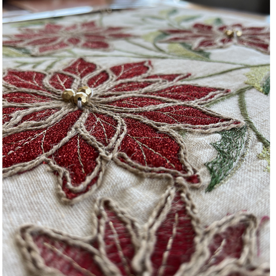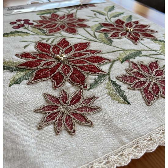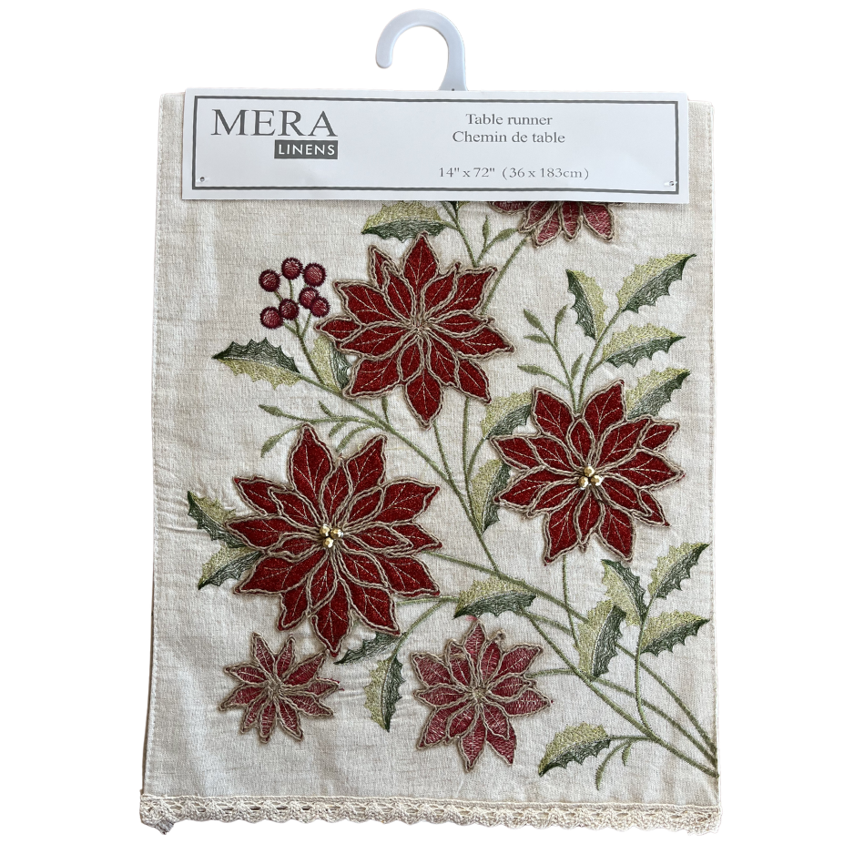 Table Runner 14x72" Natural Poinsettia Burlap - Mera Linens