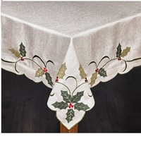Tablecloth 60x120" Natural Embroidered Holly - Mera Linens