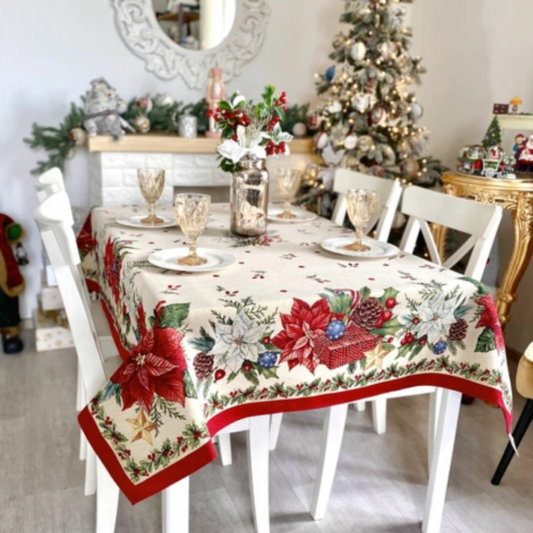 Tablecloth - Christmas Poinsettia with Gold Lurex
