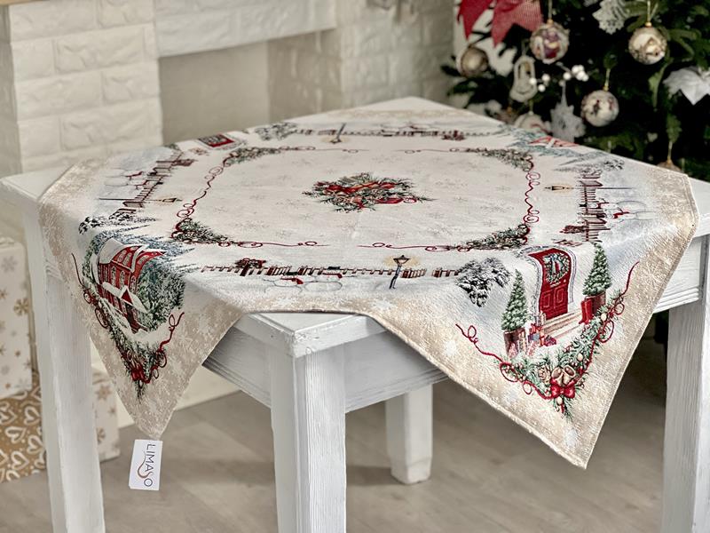Table runner - Winter Cabin with Microfiber & Silver Lurex