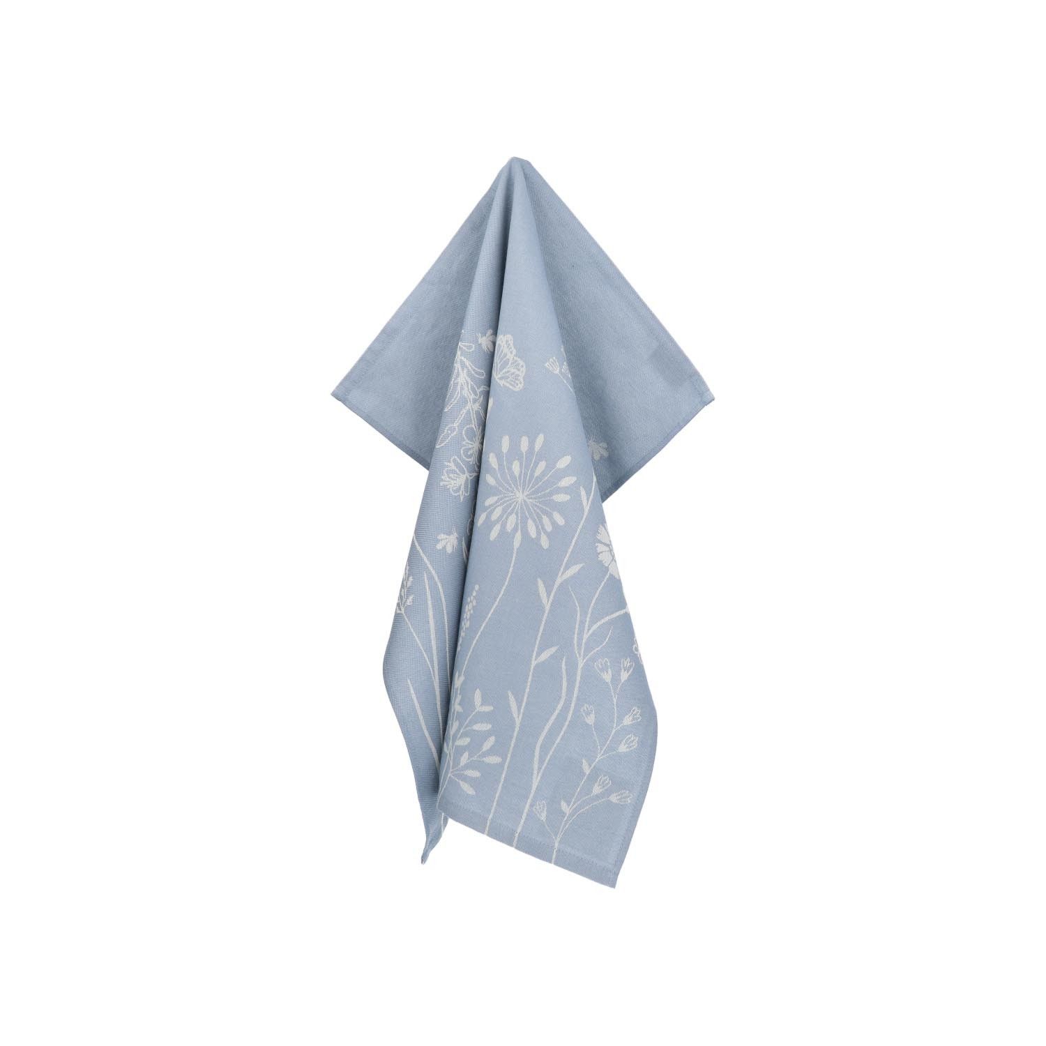 Bunzlau Castle Textile Tea Towel Wild Flowers Grey-Blue GOTS
