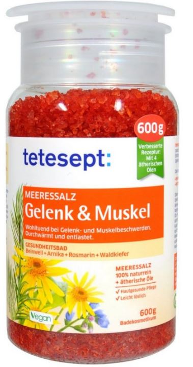 Tetesept Sea Salt Bath Salts for Joint & Muscle Relief with Comfrey, Arnica, Rosemary, Waldkiefer