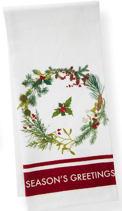 Songbird Tea Towel - Season's Greetings Wreath & Holly
