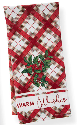 Songbird Tea Towel - Warm Wishes with Holly and Berries