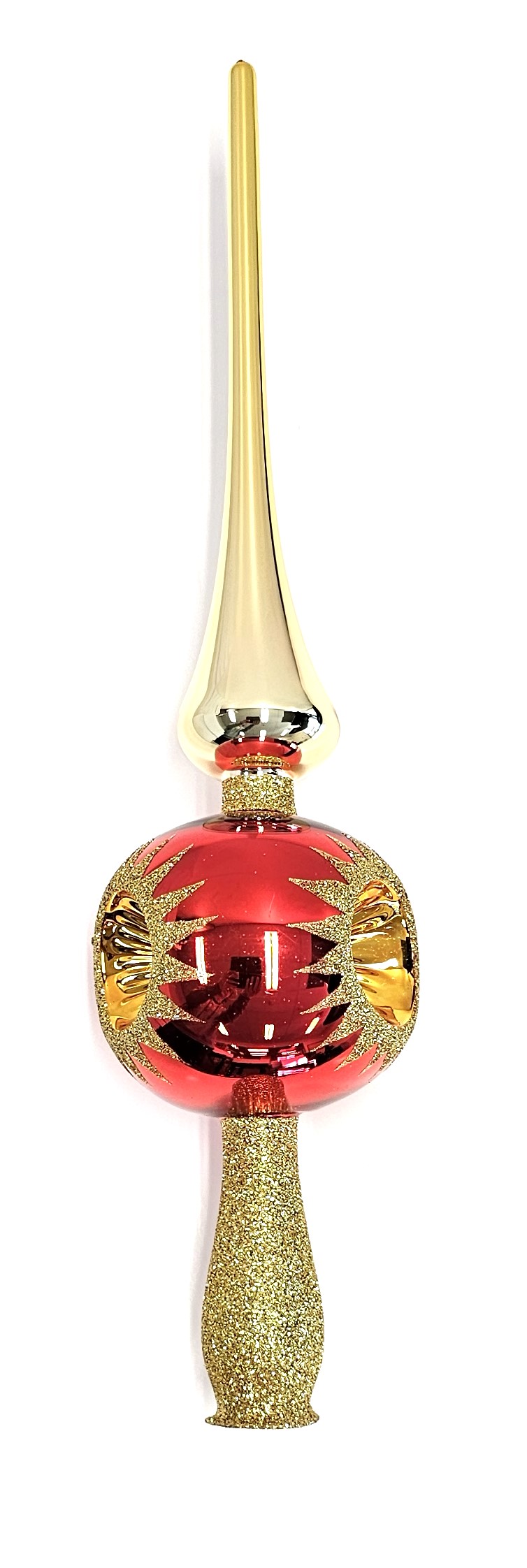 Glasblaeserei Thueringer Tree Topper 3 Reflector, Reflector Gold, red Ball