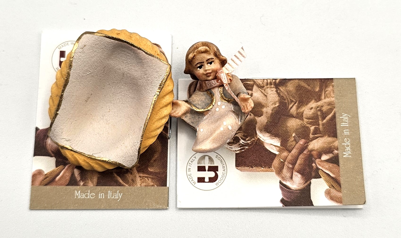 Ulpe Wood Art - standing Figure Set of 2 - Infant Jesus & Manger, colored